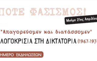 21 Απριλίου, 51 χρόνια μετά Με αφορμή τη συμπλήρωση 51 χρόνων από την επιβολή της δικτατορίας των συνταγματαρχών, ο Σύνδεσμος Φυλακισθέντων και Εξορισθέντων Αντιστασιακών (Σ.Φ.Ε.Α) 1967-1974 διοργανώνει σειρά εκδηλώσεων, που θα πραγματοποιηθούν με ελεύθερη είσοδο στην Θεσσαλονίκη στις 21, 22 [...]
